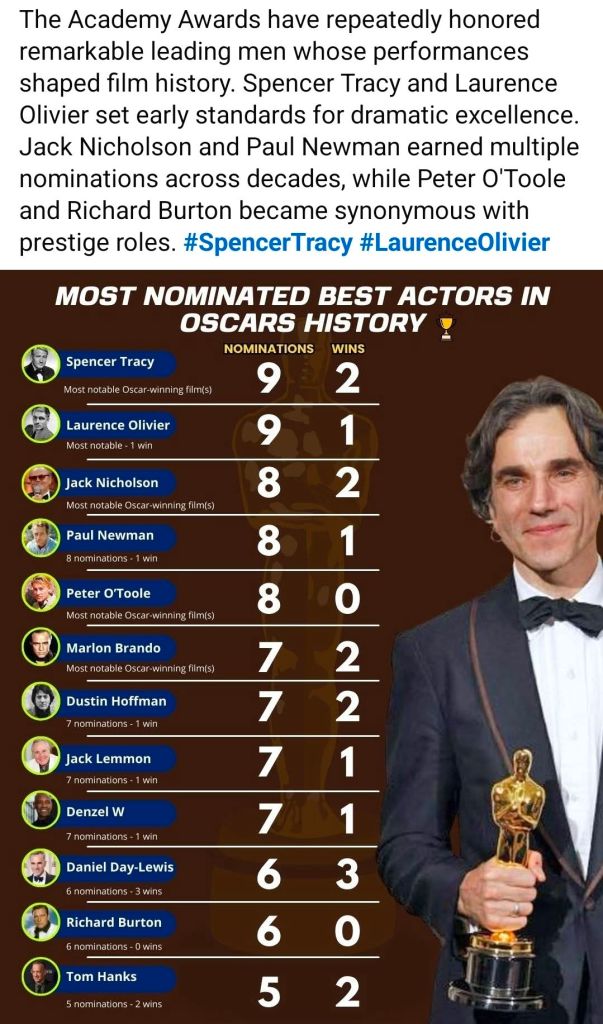 Most Nominated Male Best Actors in Oscars History