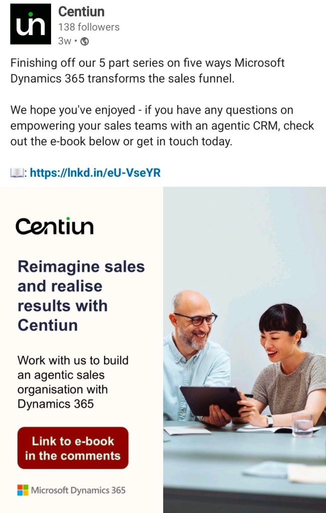 Centiun is a British IT services consultancy and Microsoft Solutions Partner that focuses on digital transformation through the Microsoft Cloud. The company specialises in Microsoft Dynamics 365, Power Platform, and Microsoft 365, providing services ranging from CRM transformation and business process automation to AI-enabled innovation. Centiun positions itself as a “SME” partner, offering a more personalised service compared to larger competitors.