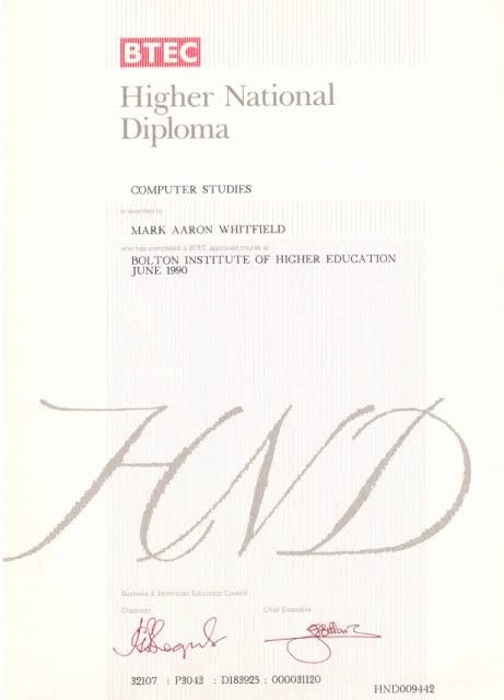 - Institution: Bolton Institute of Higher Education, BIHE (now University of Greater Manchester).