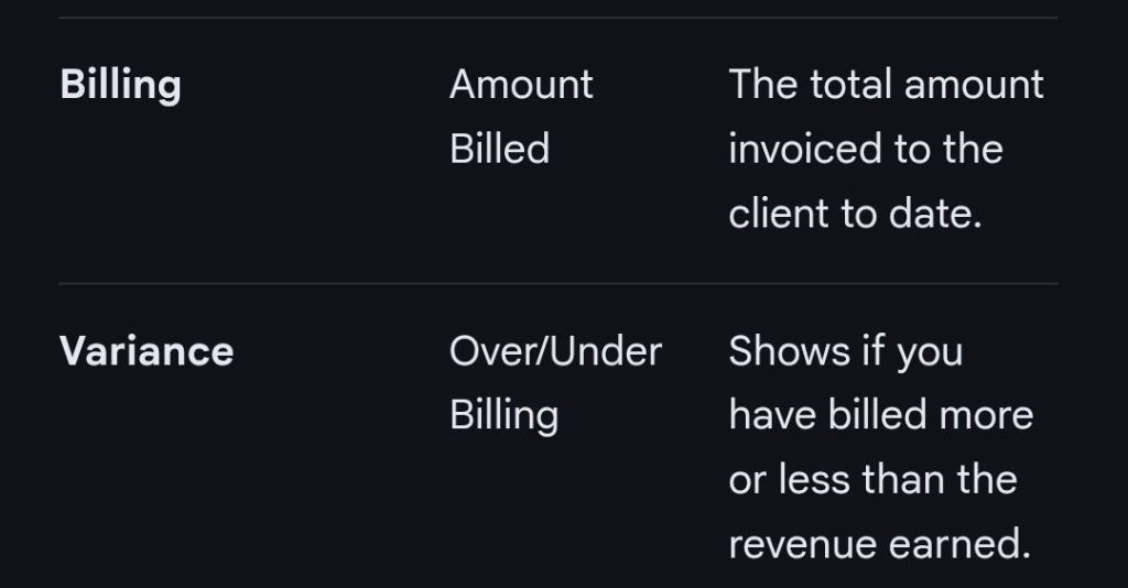 Summary of (Construction / Contracting) ‘Financial’ Work in Progress (WIP) columns in Excel