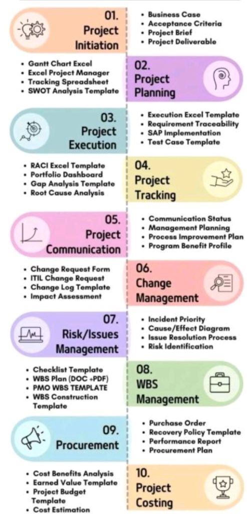 PM Templates are in Microsoft Office (MS Excel, Word, PowerPoint) and Microsoft Project formats.